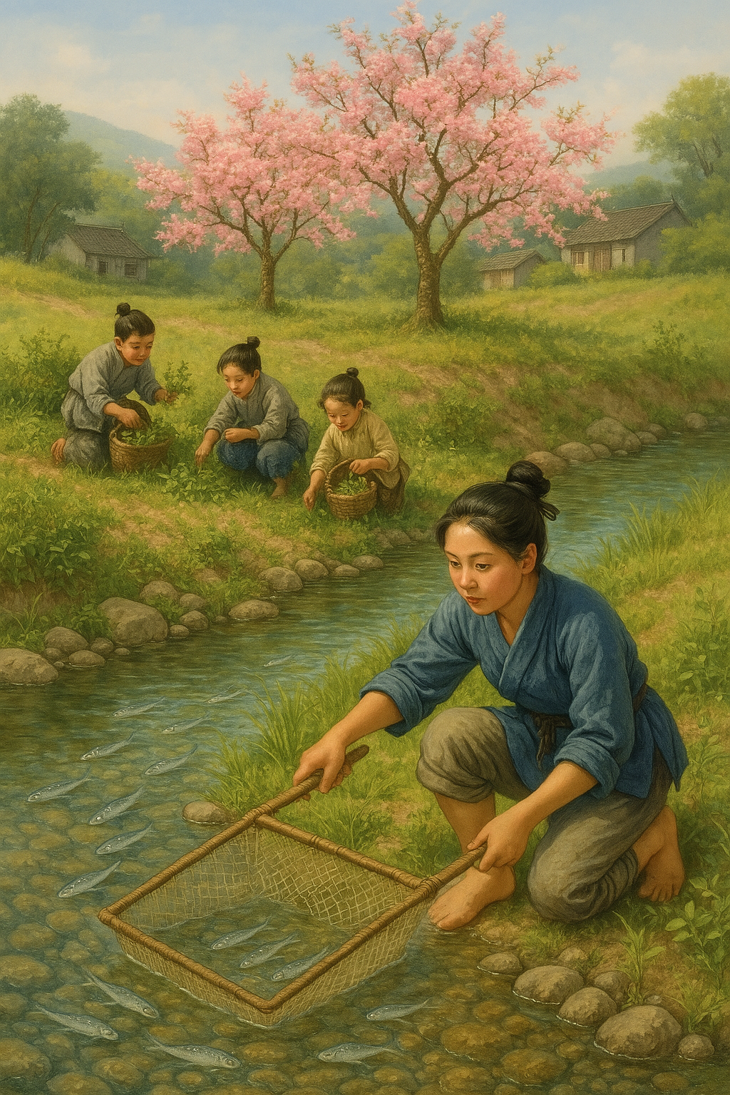 — Может быть, назовём наш рисунок в честь Чжэндина? — предложил он, направляясь к подставке с кистями. — Река Ча, протекающая через Чжэндин, берёт начало в реке Хуто. В «Чжоули» её называют Тучным омутом, а во времена Северной Вэй — рекой Циннин. Давай выберем что-нибудь из этого.