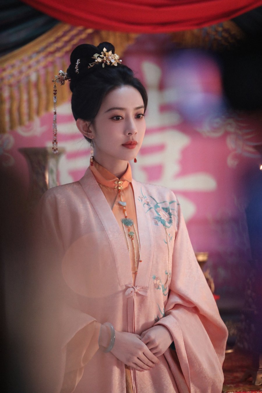 Доу Чжао весело улыбалась, одетая в праздничную ярко-красную куртку с узором в виде фонариков, украшенную вышивкой, с головным убором, усыпанным жемчужинами и бисером. Из-за беременности её кожа, и без того нежная и светлая, стала ещё более сияющей, с розовым румянцем, и она выглядела просто ослепительно, наполняя собой комнату светом и теплом, поднимая настроение каждому, кто на неё смотрел.