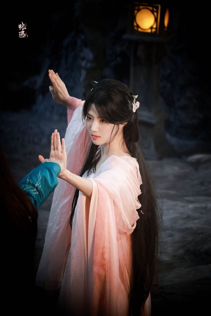 Фэйхуачэнские ночи — без единой звезды. Густая, вязкая тьма. Цзи Боцзаю пришлось вглядеться, чтобы различить черты её лица: размытые, словно в тумане, но с чёткой линией профиля, на фоне которой светился мягкий, почти призрачный синий контур.