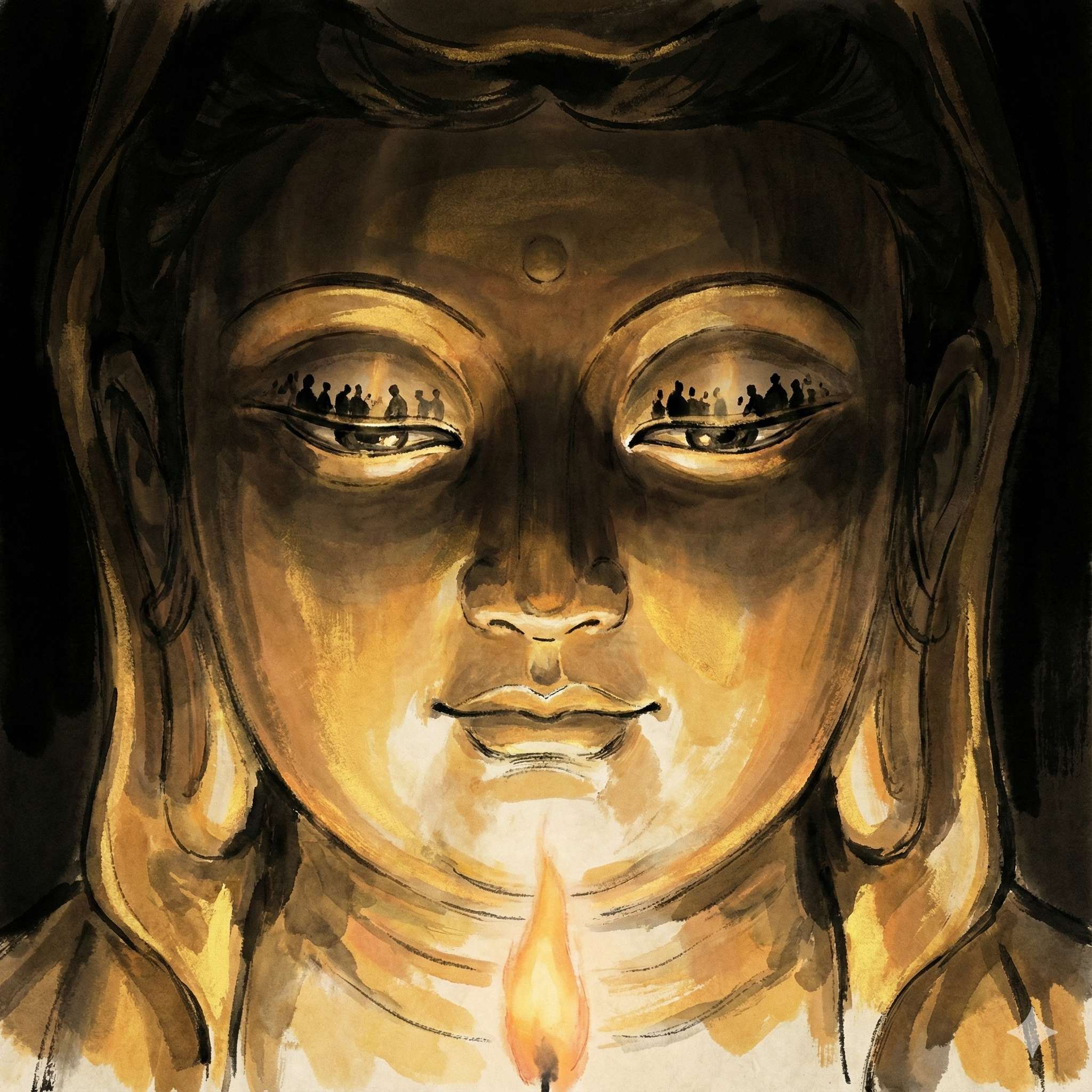 Юаньси украдкой подняла взгляд. Она посмотрела на позолоченных Архатов над головой, застывших в яростных гримасах, и невольно нахмурилась. «Что же тогда на самом деле случилось? — думала она. — Это ведь просто мертвые изваяния, глина, покрытая золотом. Как они могли ни с того ни с сего заплакать кровью?»