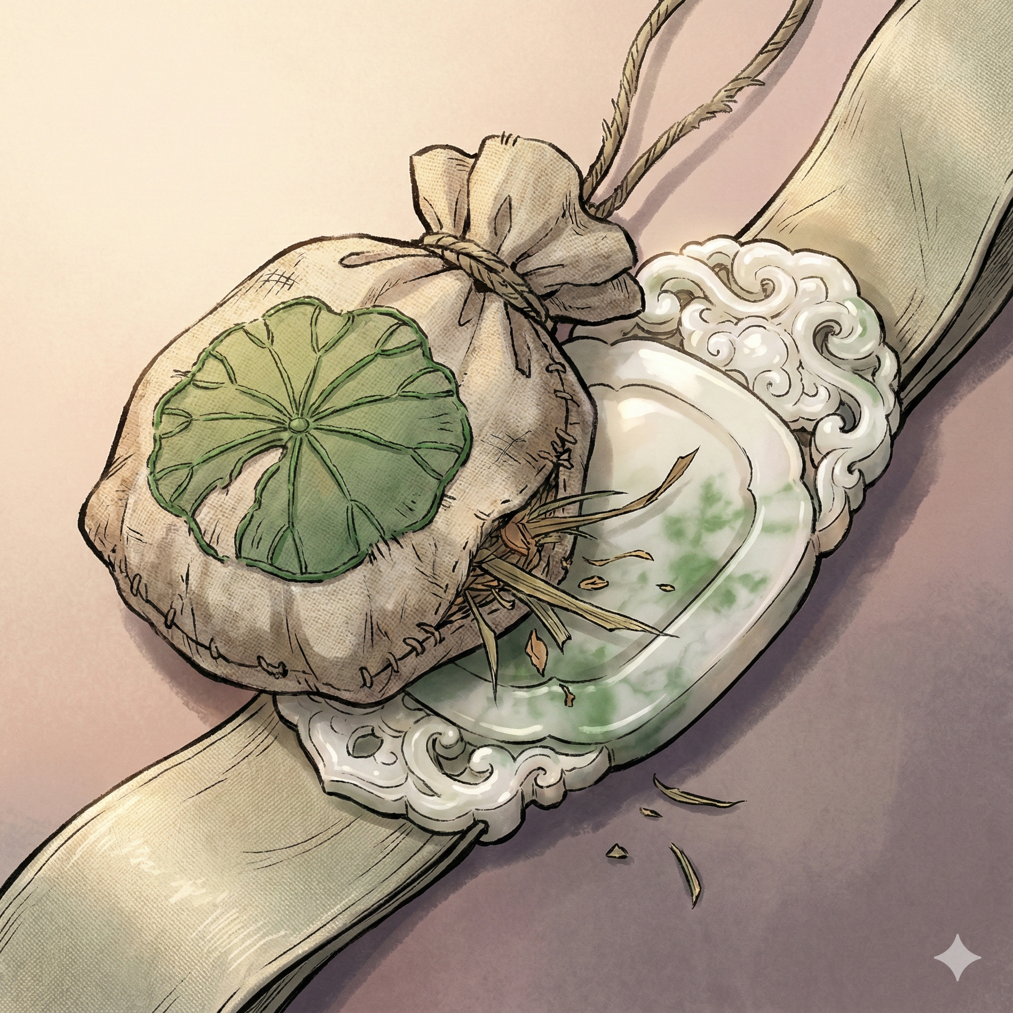 Сердце Сяо Ду вздрогнуло. Он перевёл взгляд на этот маленький ароматный мешочек — саше. Самый простой лист лотоса был вышит так неаккуратно, а края обшиты столь косо и криво, что становилось ясно: в рукоделии она, несомненно, не сильна. Сяо Ду, прикрыв уголок губ, чтобы скрыть улыбку, нарочито холодно усмехнулся: