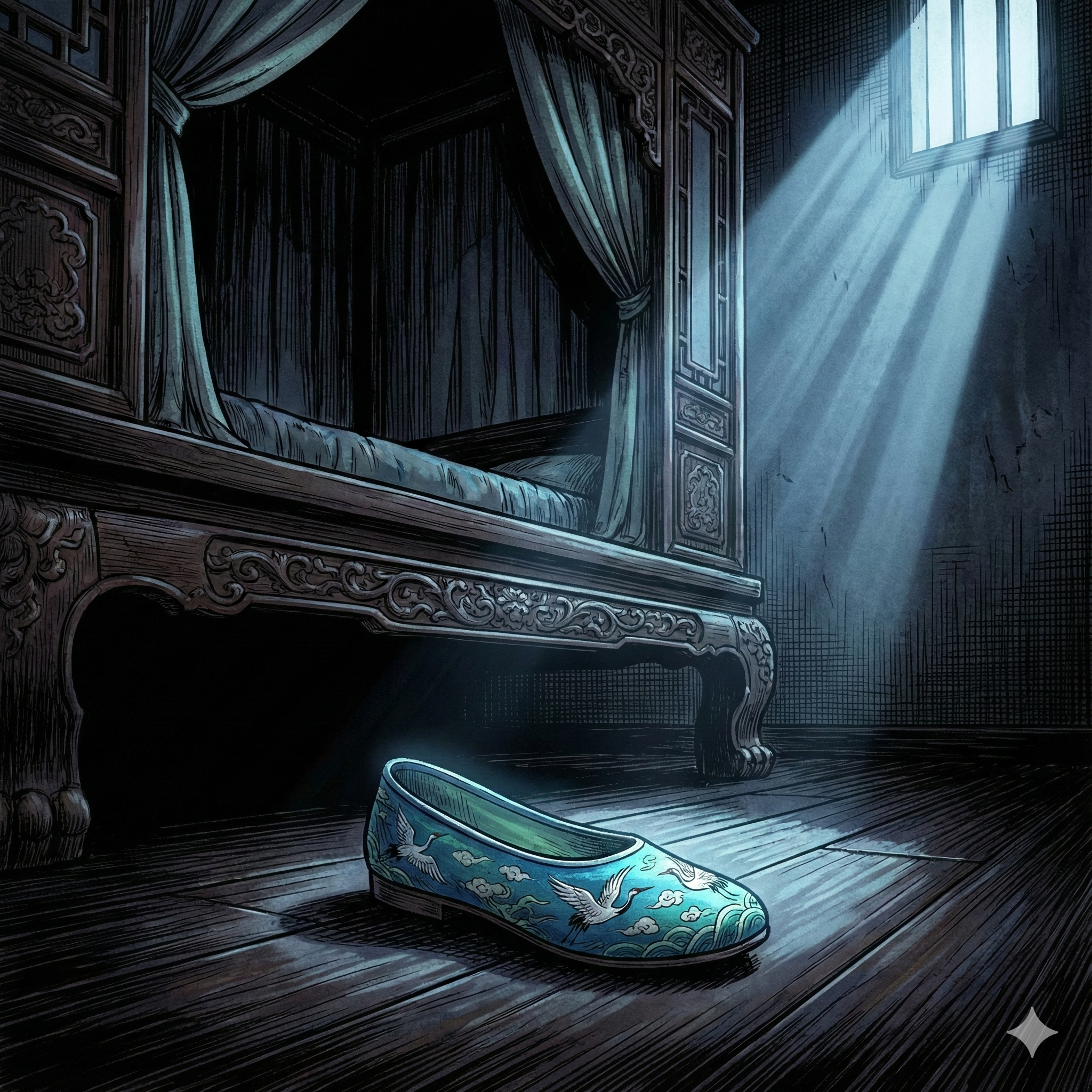 — В ту ночь, когда Ванфэй была в опасности, — начала Юаньси, — под её кроватью нашли туфельку, которая ей не принадлежит. Логично, что её обронила Чжуй-эр. Но если она и вправду вернулась в поместье как мстительный дух, зачем ей понадобилось специально переобуваться?