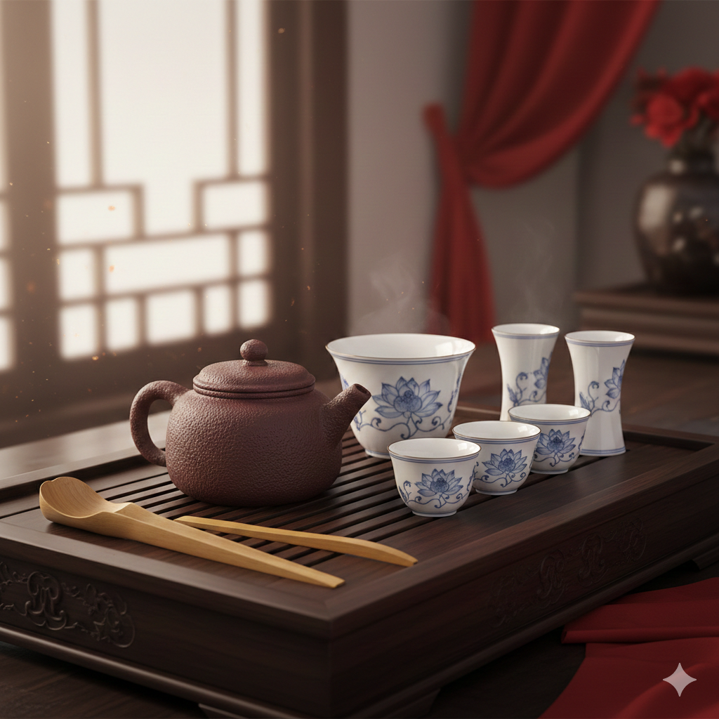 [3] Подношение чая (奉茶, Fèng Chá): Ключевая церемония на следующее утро после свадьбы. Невеста официально подает чай родителям мужа и старшим членам семьи, которые, в свою очередь, принимают ее в семью (обычно вручая красный конверт или подарок).
