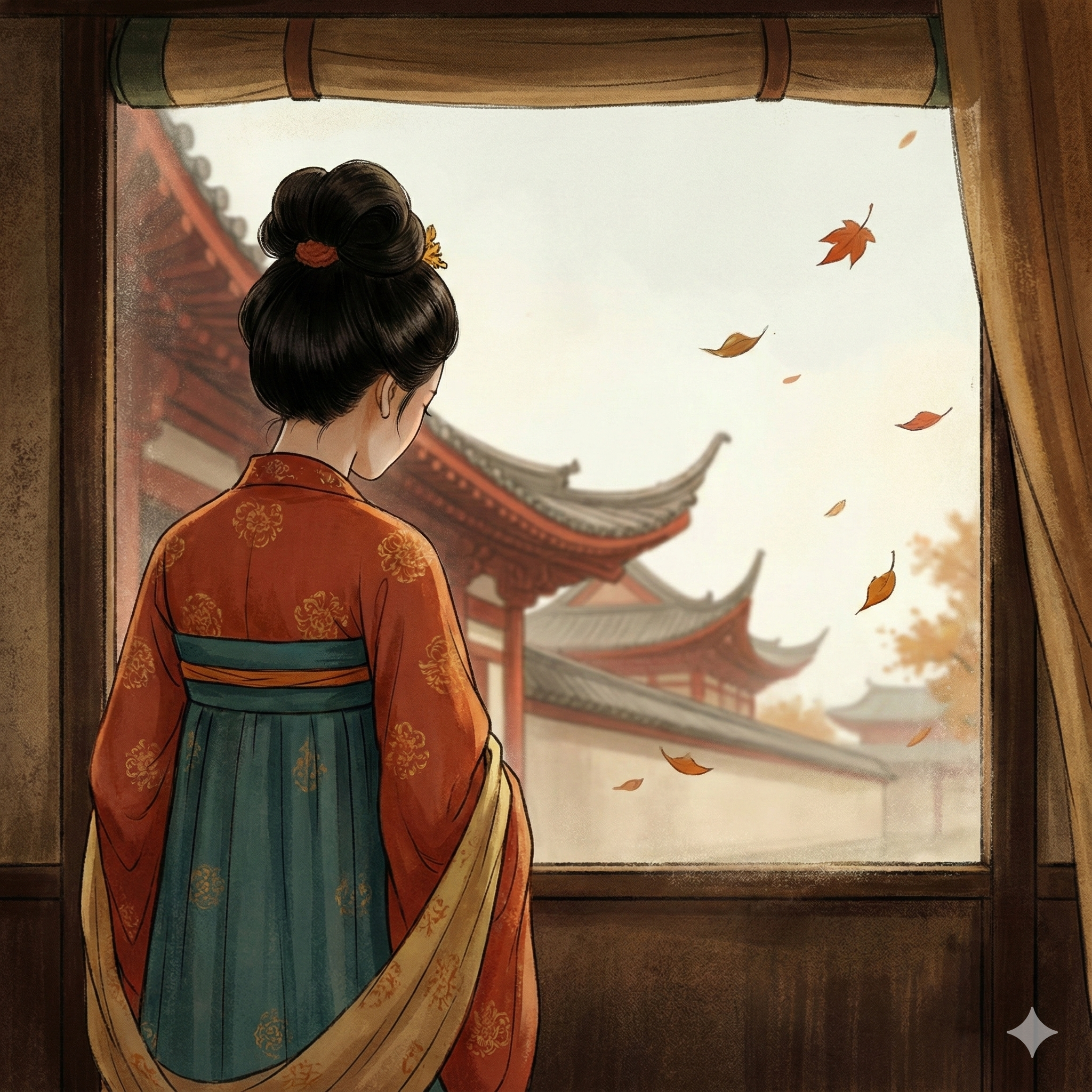 Сердце Юаньси билось в такт тряске повозки. Она смотрела, как алые, загнутые карнизы поместья Хоу медленно исчезают из виду. Внезапно она вспомнила день своей свадьбы. Её везли в поместье по этой же самой дороге. Тогда в её душе были и тревога, и надежда, и тоска.