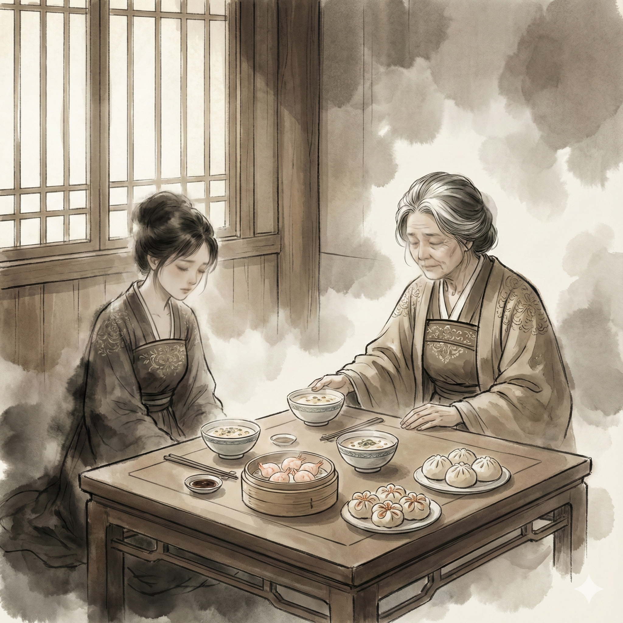 Седьмая наложница, подняв голову и заметив ее поникший вид, мысленно вздохнула. Она наполнила пиалу кашей, пододвинула ее к девушке и мягко произнесла: