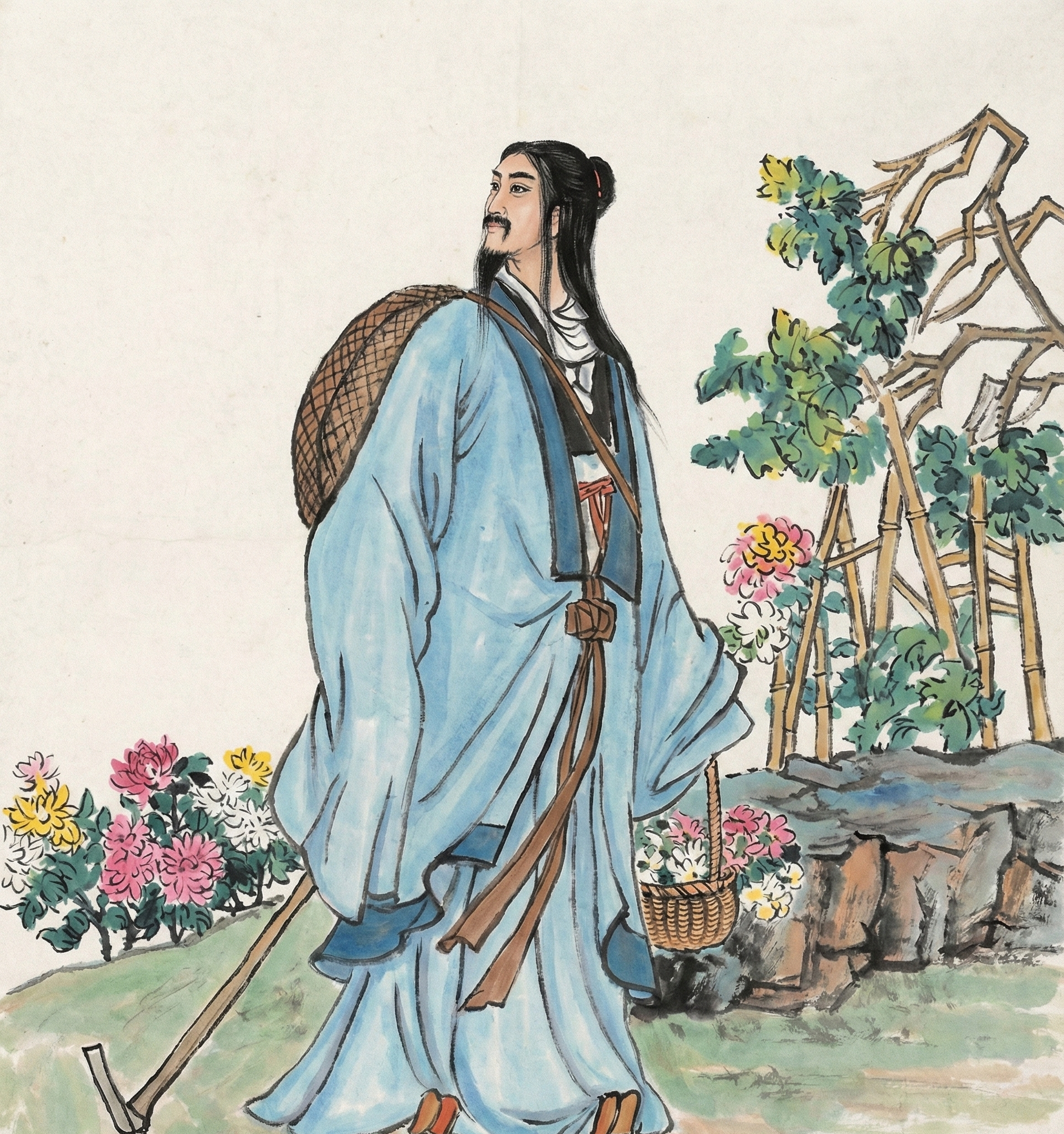 [3] Тао Юаньмин (陶渊明, 365–427 гг.), также известный как Тао Цянь, — один из величайших китайских поэтов, основатель жанра поэзии «полей и садов». Он жил в неспокойную эпоху Шести династий. В китайской культуре он является символом отшельника и человека высоких моральных принципов, который предпочел простую сельскую жизнь интригам и грязи чиновничьей службы.
