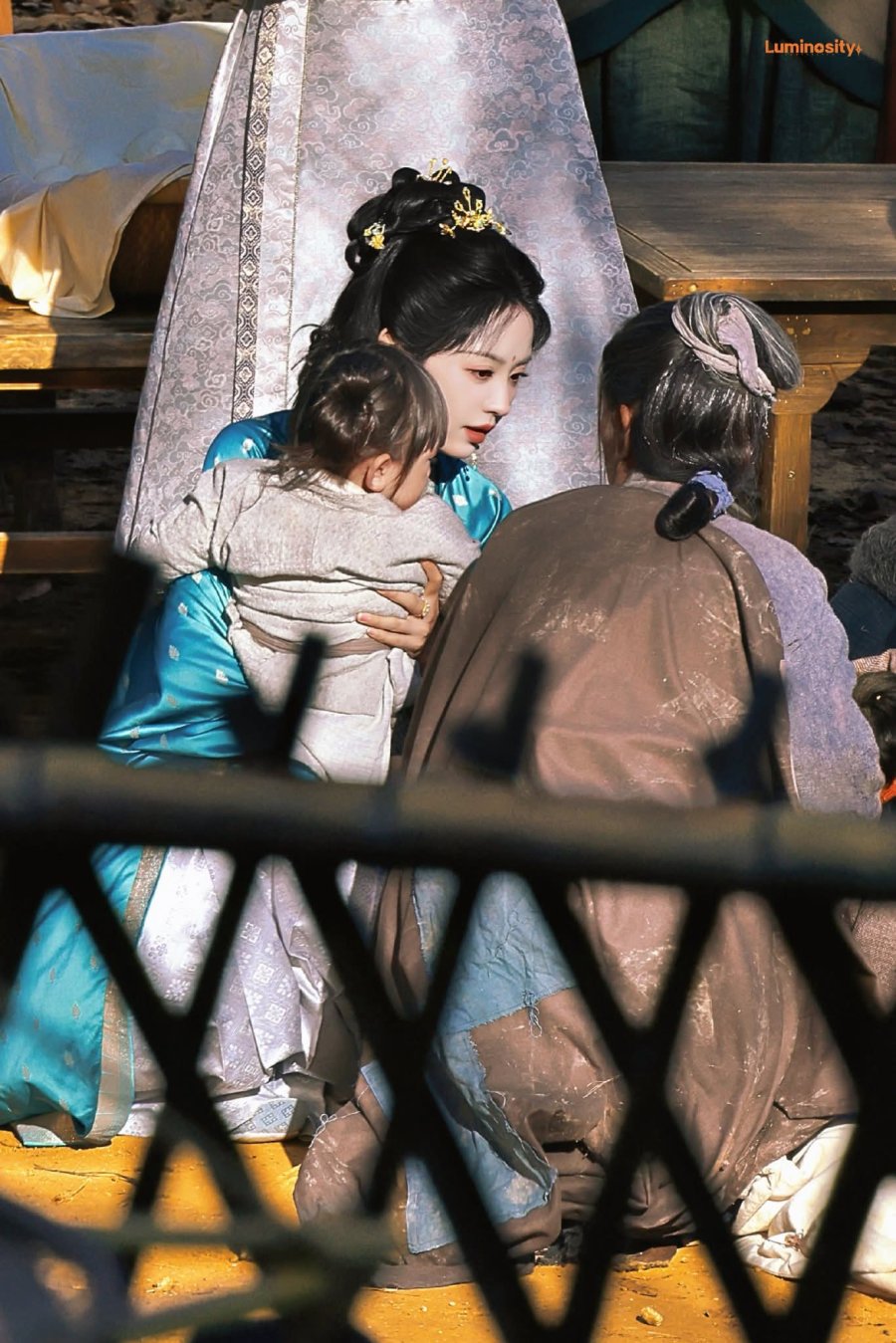 Вэй Жао, слегка опустив голову и держа в руках большой красный шелковый шар, осторожно вышла из паланкина.