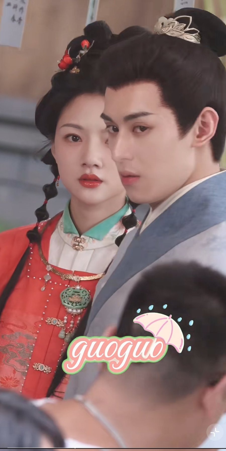 Цзиньчао огляделась, но нигде не увидела Гу Лянь. Та появилась лишь спустя время, буквально сияя от счастья. На ней был шелковый бэйцзы цвета заката, в волосах — золотая шпилька в виде лотоса с рубинами, а на лоб она нанесла изящный макияж хуахуан.