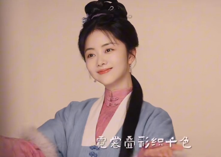 Двери открылись, и в комнату вошла Чуньлин в сопровождении двух маленьких служанок; каждая несла стопки ткани. Чуньлин, сияя весенней улыбкой, почтительно поздоровалась и произнесла: