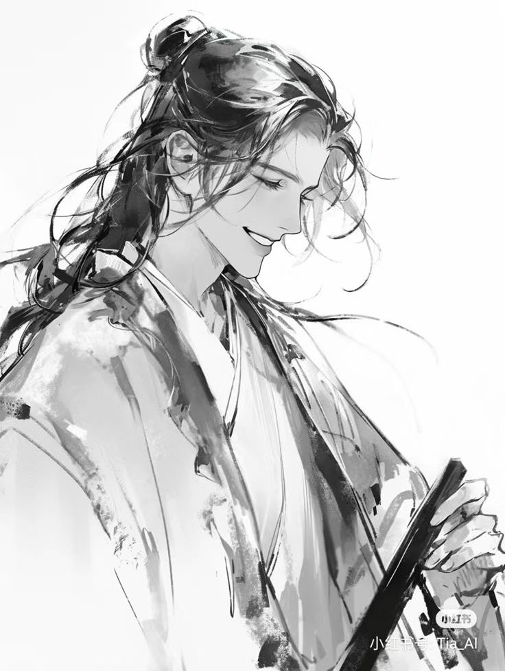 Шэнь И был одет в простое платье из грубой ткани. Статный и высокий, он казался бледным, но это ничуть не умаляло благородной красоты его черт. Он то брал камень, то снова клал его на место, пока наконец не произнес: